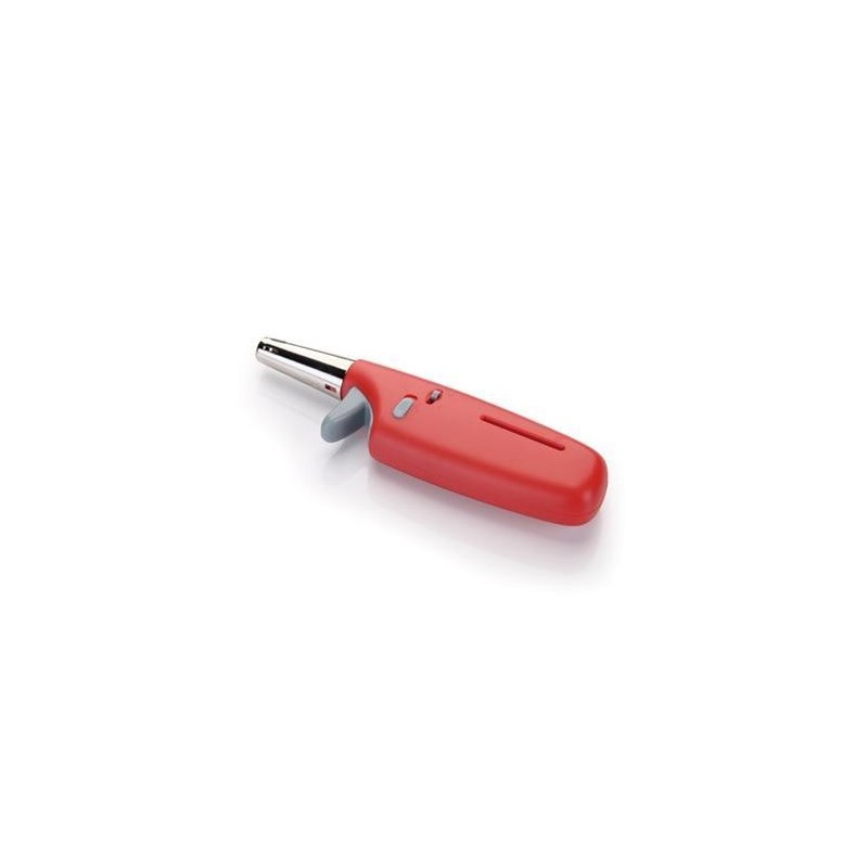 Excellent pour l’éclairage des cuisinières à gaz, des barbecues, des bougies, etc. Remplissez avec du liquide de briquet normal, inspecter le niveau du fluide en regardant à travers l’ouverture dans la poignée du briquet. Réglez la taille de la flamme en plaçant le dispositif de réglage en position « + » ou « - ». Livré avec un dispositif de verrouillage de sécurité.